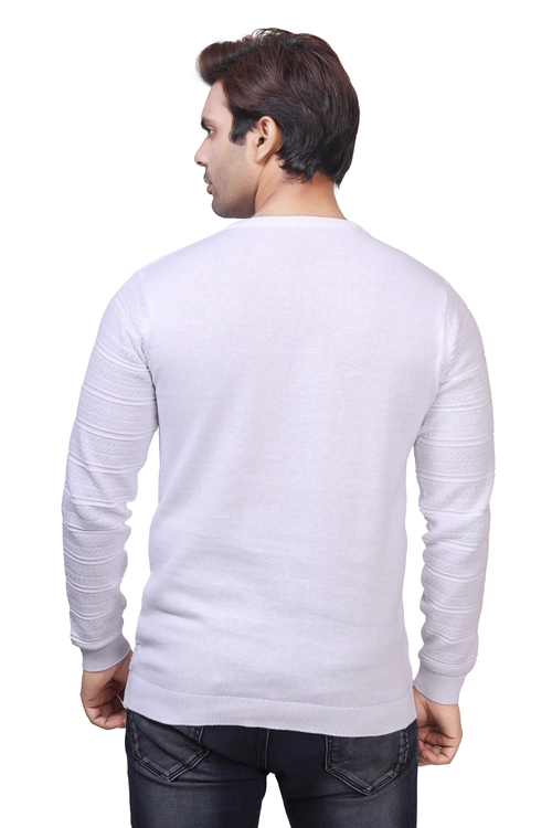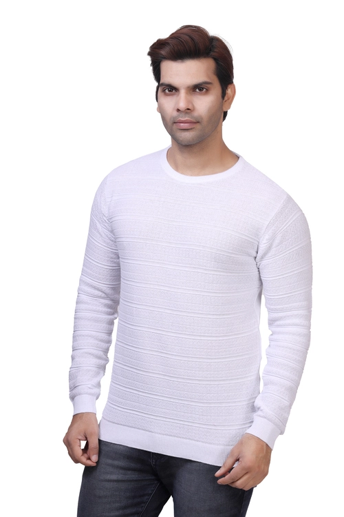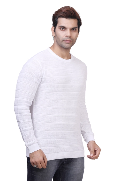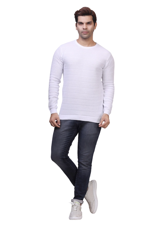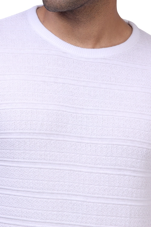 Starcotton Men Knitted White Round Neck Cotton T-Shirt